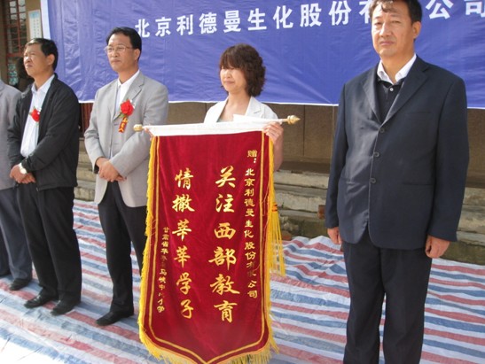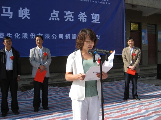 马峡,甘肃—— 2010年9月7日,米兰网入口站官网向甘肃省平凉市华亭县马峡中心小学无偿捐赠了价值十万元的钢木课桌椅。米兰网入口站官网副总经理张雅丽、华亭县县委常委、副县长徐德才、华亭县教育局局长陶玉宏等出席了捐赠仪式。马峡中心小学校长杜安平向米兰milan(中国)公司赠送了锦旗,表达感激之情。
