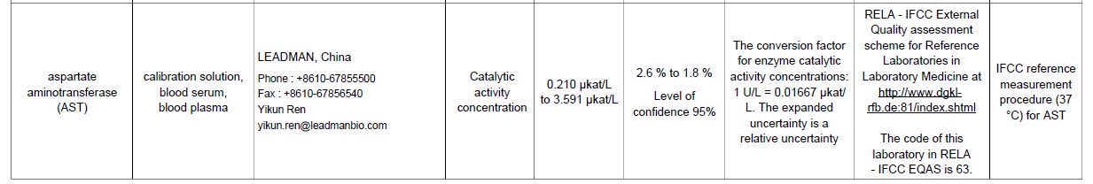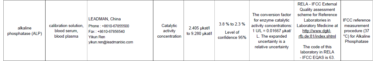 米兰milan(中国)医学参考实验室本次申报的肌酸激酶(CK)、丙氨酸氨基转移酶(ALT)、天冬氨酸氨基转移酶(AST)、乳酸脱氢酶(LDH)、γ-谷氨酰基转移酶(GGT)、α-淀粉酶(α-AMY)和碱性磷酸酶(ALP)7个酶学项目全部获得通过,涵盖了已建立参考方法且临床常用的所有酶学项目,表明米兰milan(中国)医学参考实验室对上述7个酶学项目的参考测量水平已达国际最高水平,有资格为全球体外诊断试剂制造商、医疗机构、第三方检测机构等提供国际认可的参考测量定值服务,也为检验结果的互认提供了技术支持。