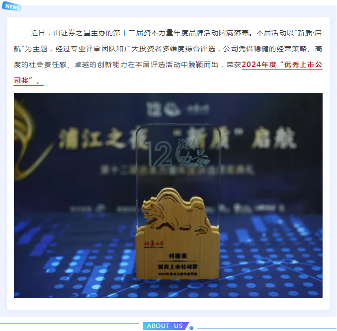 米兰milan(中国)荣获“证券之星·资本力量” 2024年度优秀上市公司等奖项